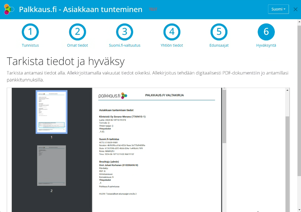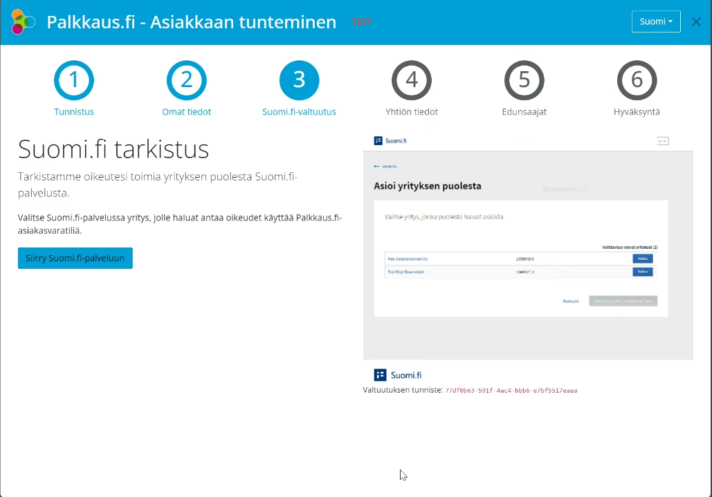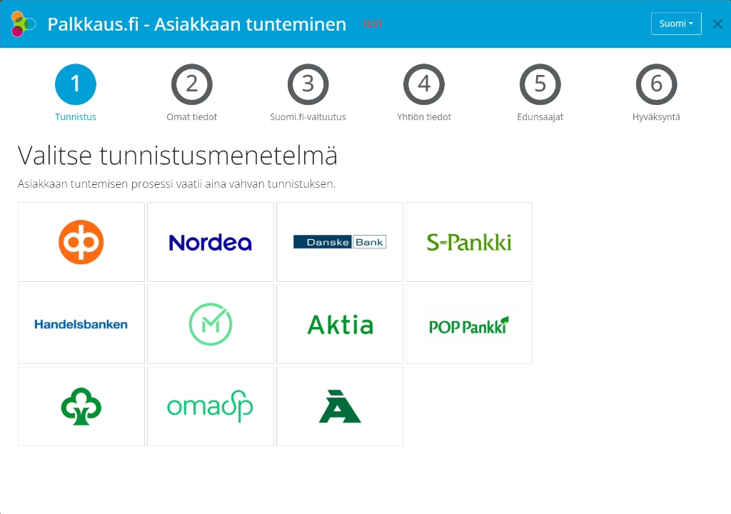 Klikkaa työpäydältä "Päivitä asiakkaan tuntemistiedot nyt" -nappia tai mene osoitteeseen https://iam.palkkaus.fi/wizard/index.html