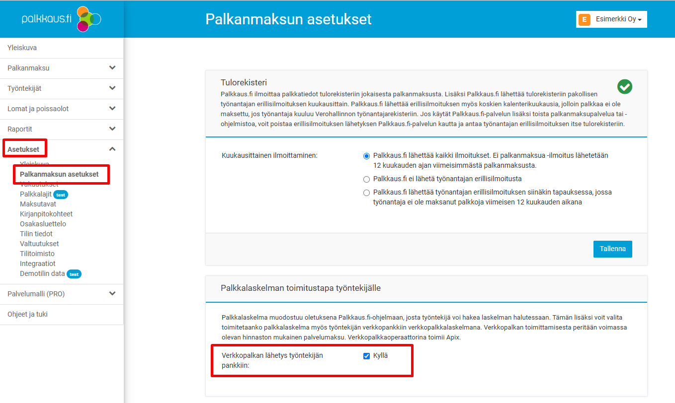 - Verkkopalkkalaskelma lähetetään automaattisesti, kun palkka kirjataan maksettu-tilaan.