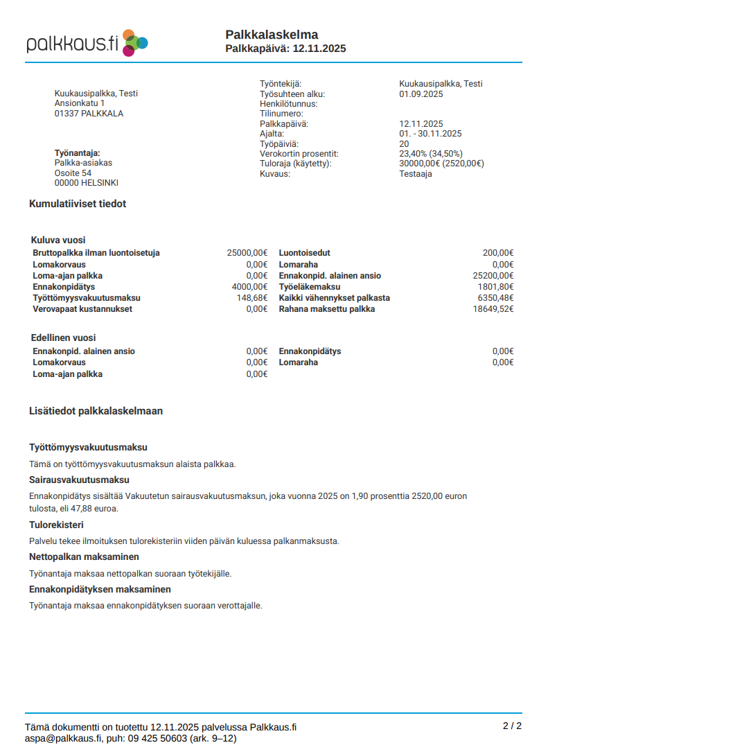 Kumulatiiviset tiedot ovat nähtävissä palkkalaskelman toisella sivulla jatkossa:
