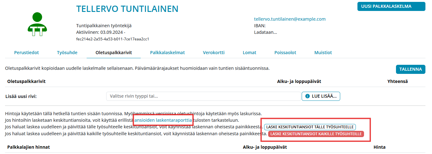 - Laske keskituntiansiot tälle työsuhteelle - päivittää ko. henkilölle