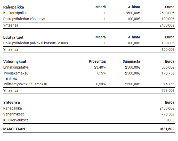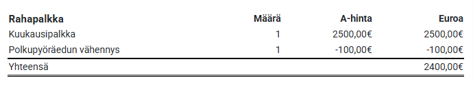 Polkupyöräedulle on oma palkkalaji laskelman ruudusta 4. Vähennykset, kulut jne.